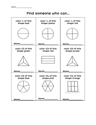 FRACTIONS Colour the Fraction of Each Shape Grade 2 to 3 (2nd to 3rd