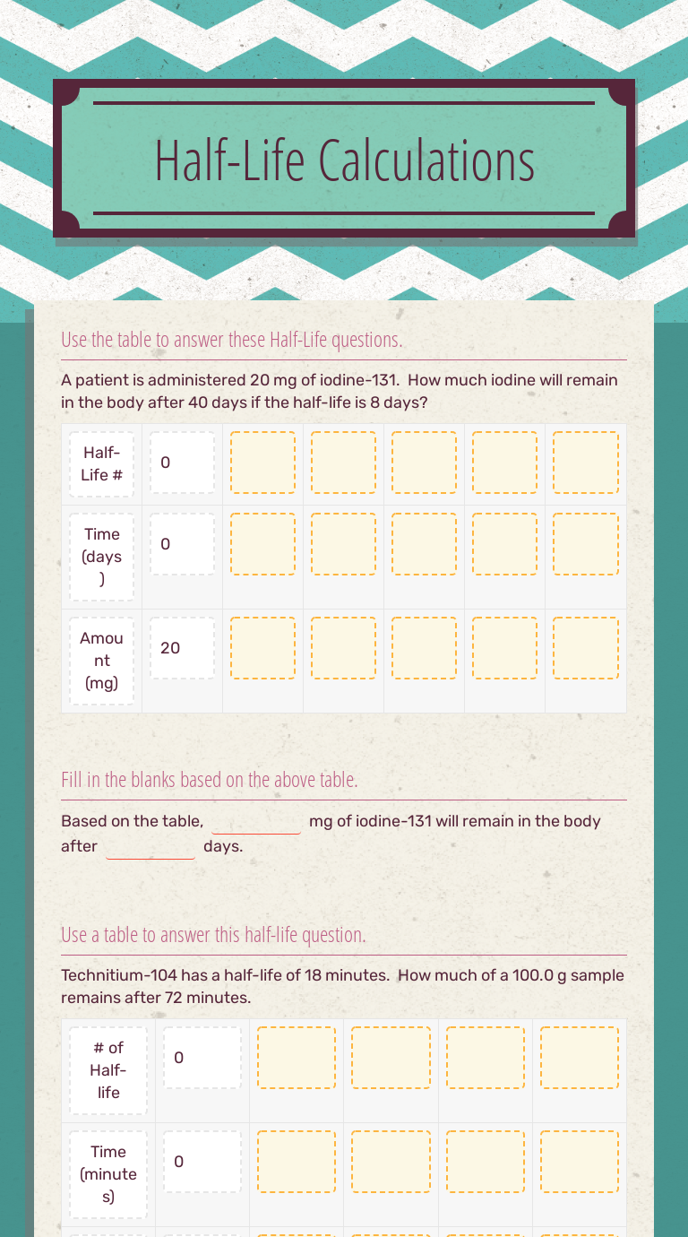 Half Life Calculations Worksheet Printable Calendars AT A GLANCE
