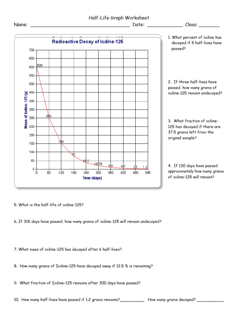 Half Life Graph Worksheet Answer Key Printable Word Searches