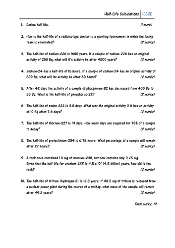 Half Life Problems Chemistry Worksheet With Answers Half Life IGCSE