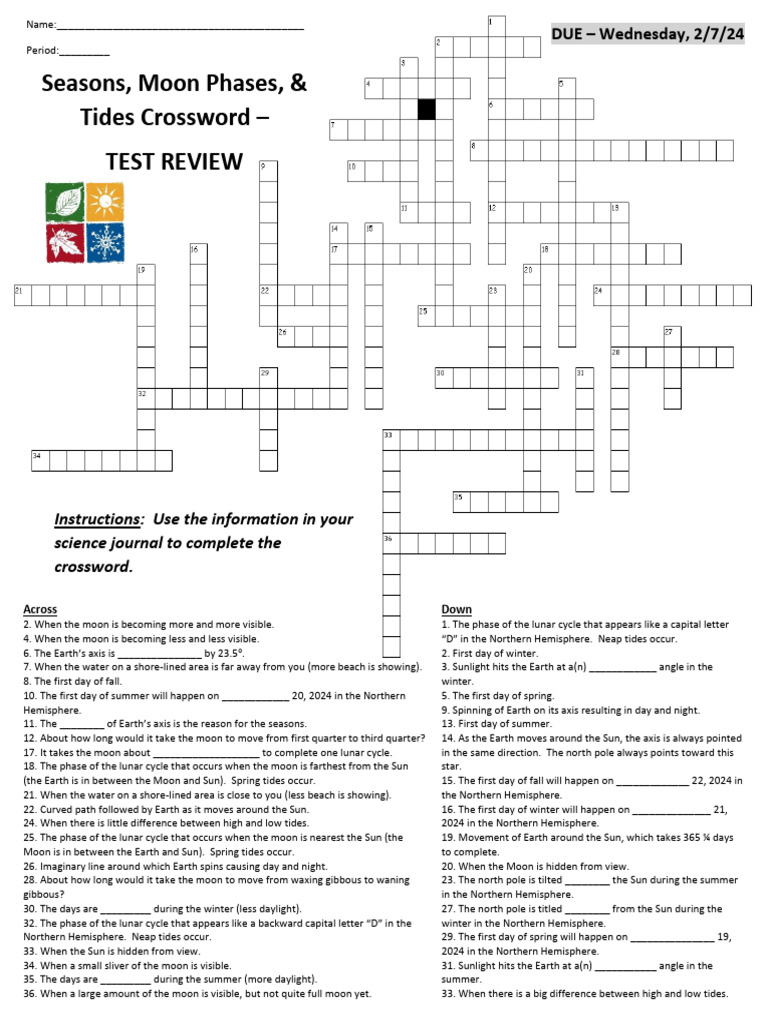 Seasons MoonPhases Tides Crossword PDF Moon Tide