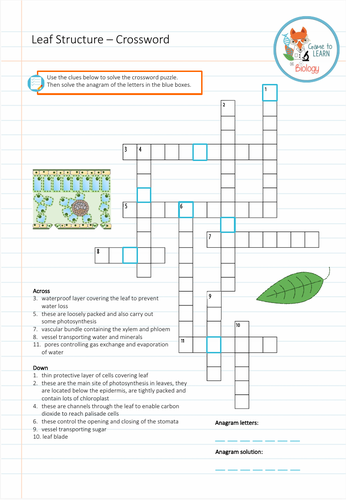 Leaf structure crossword Teaching Resources