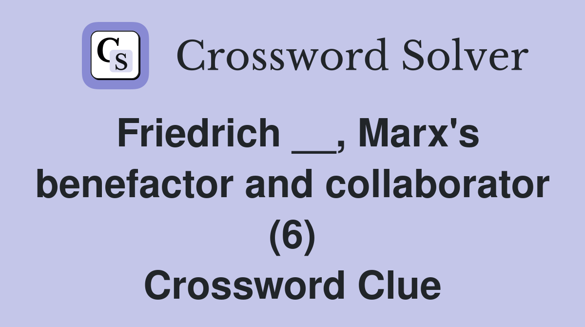 Friedrich Marx #39 s benefactor and collaborator (6) Crossword Clue