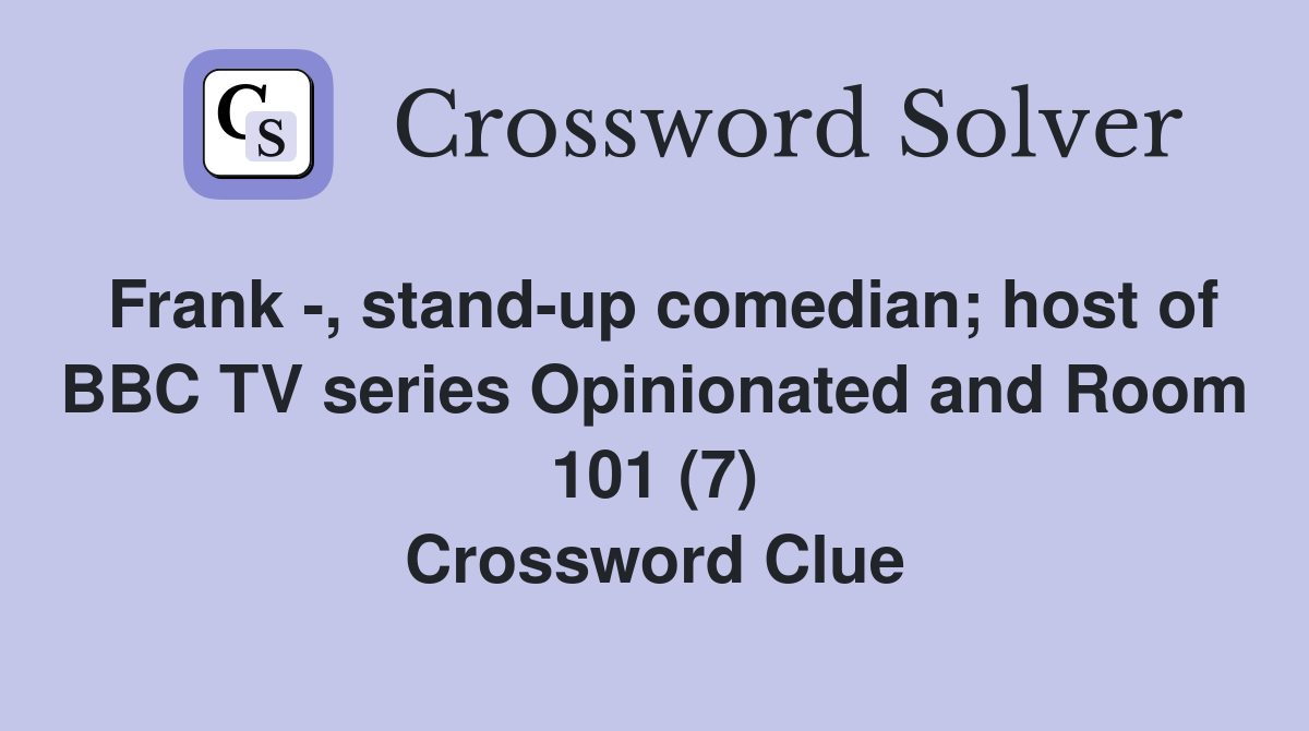 Frank stand up comedian host of BBC TV series Opinionated and Room