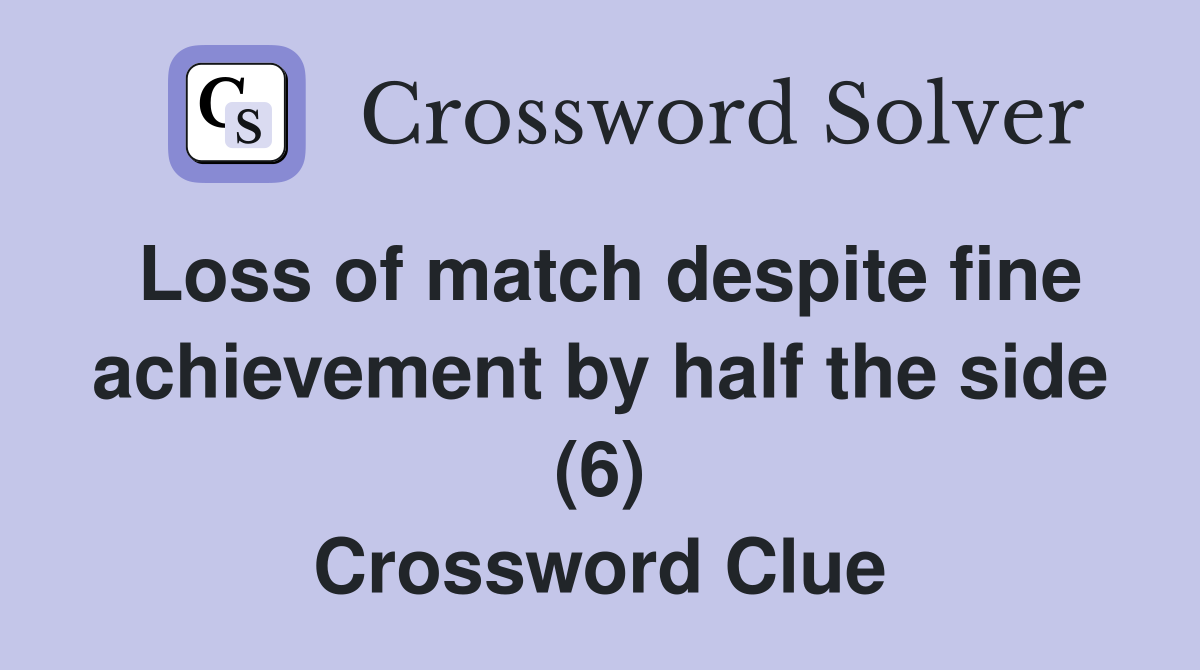 Loss of match despite fine achievement by half the side (6) Crossword