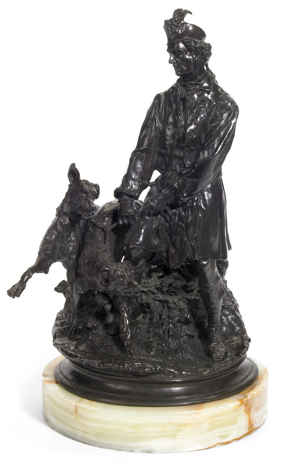 Bonhams : A French patinated bronze figural group Valet de chien tenant