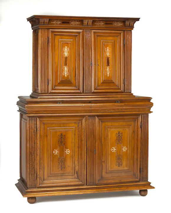Bonhams : A French Baroque inlaid walnut buffet à deux corps second