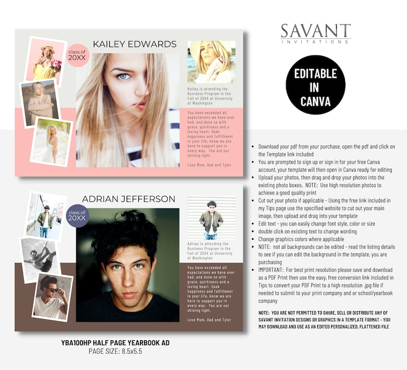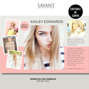HALF PAGE Yearbook Ad Canva Template DIY Editable Personalized High