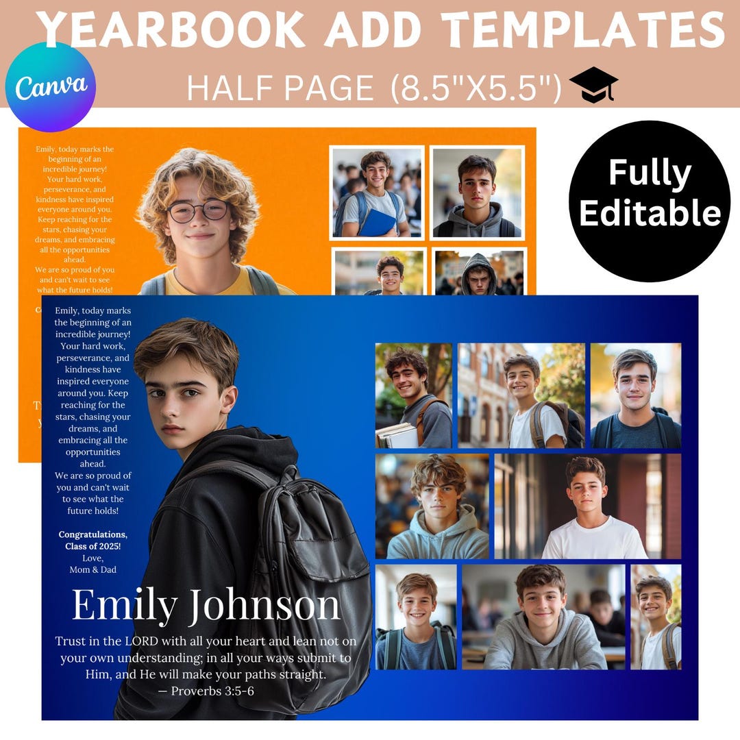 Half Page Yearbook Template Boy Yearbook Ad Template Half Etsy