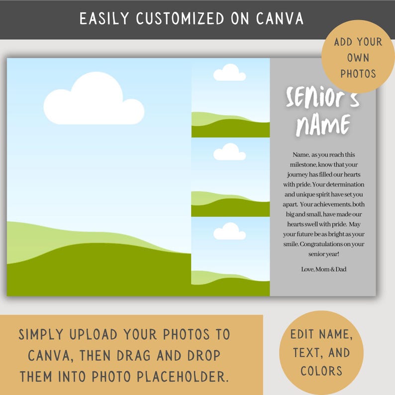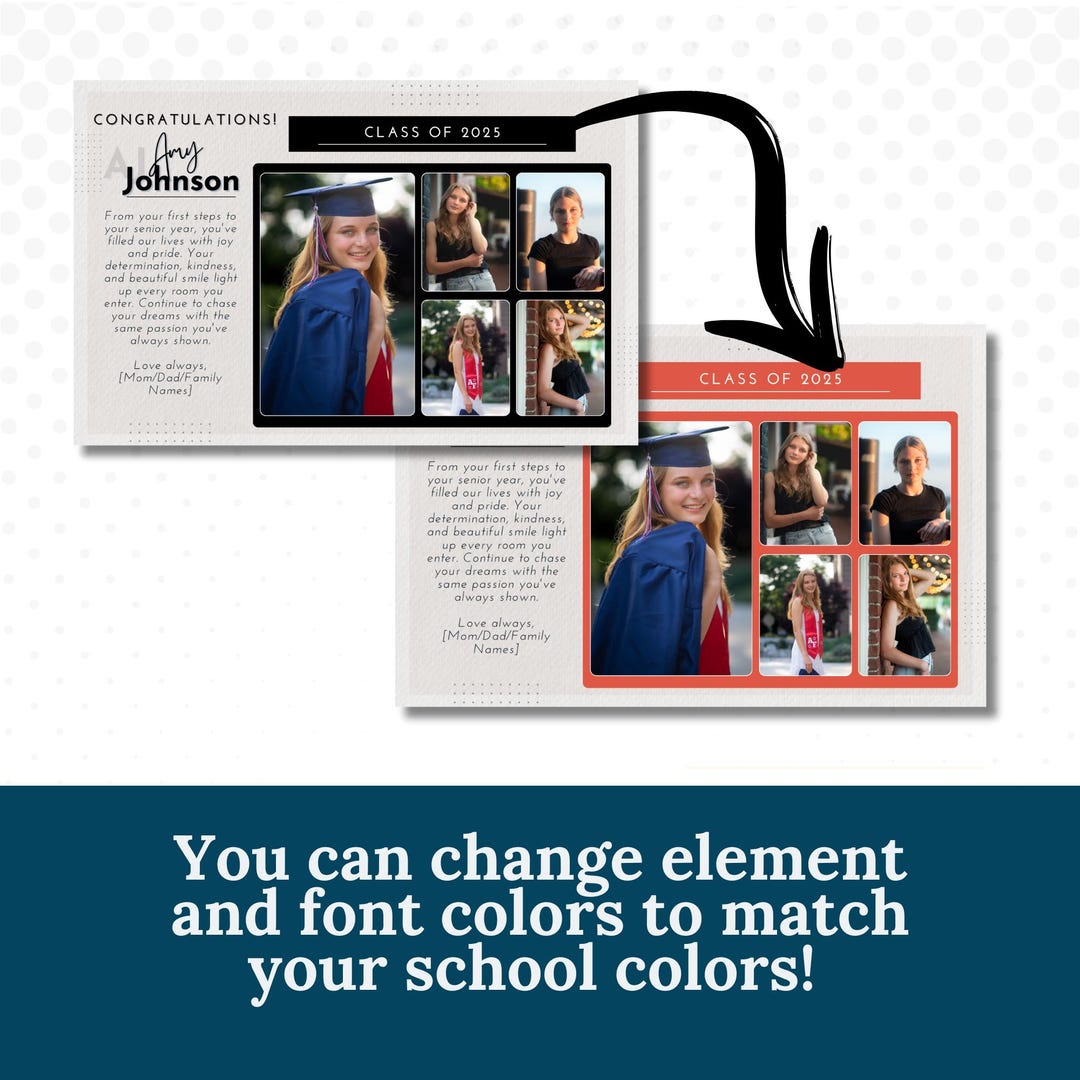 Senior Yearbook Ad Template Fully Editable Half Page Template for