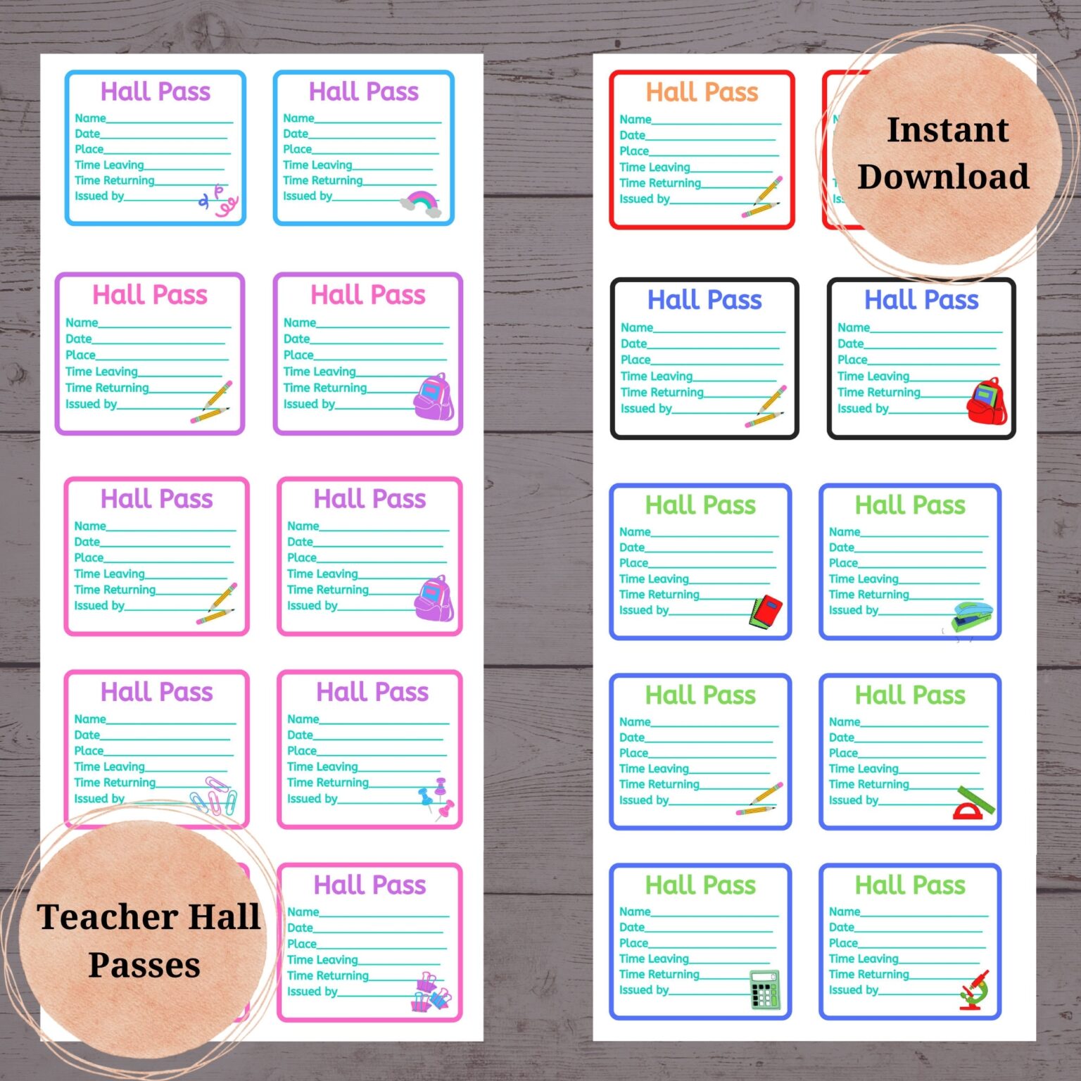 Hall Pass Template Set Editable by S more Time for Teaching TPT