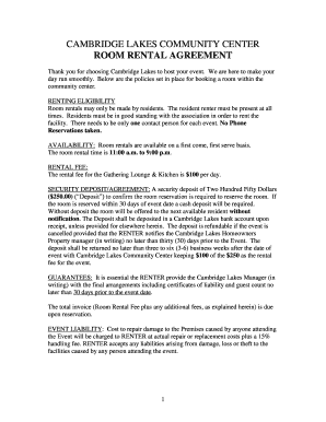 Fillable Online CAMBRIDGE LAKES COMMUNITY CENTER ROOM RENTAL AGREEMENT
