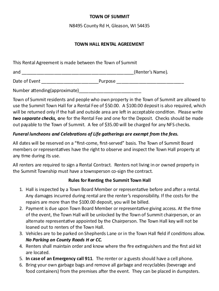 Fillable Online Summit Town Hall Rental Agreement Langlade County Fax