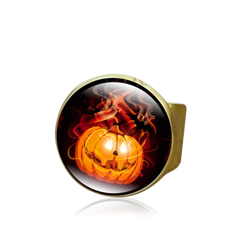 Wholesale Halloween Party Ring Pumpkin Adjustable Gem Glass Finger Rin