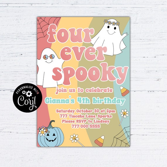 Four ever spooky invitation Retro 70s Halloween party invite Hippie