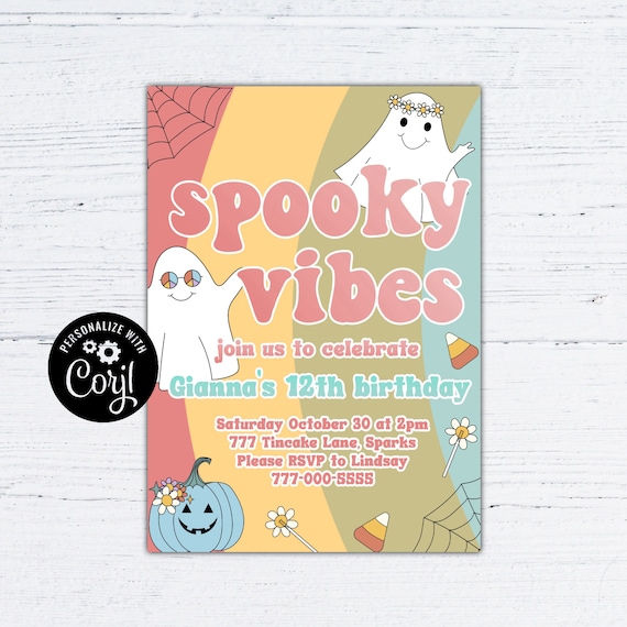 Spooky vibes invitation Retro 70s Halloween party invite Hippie