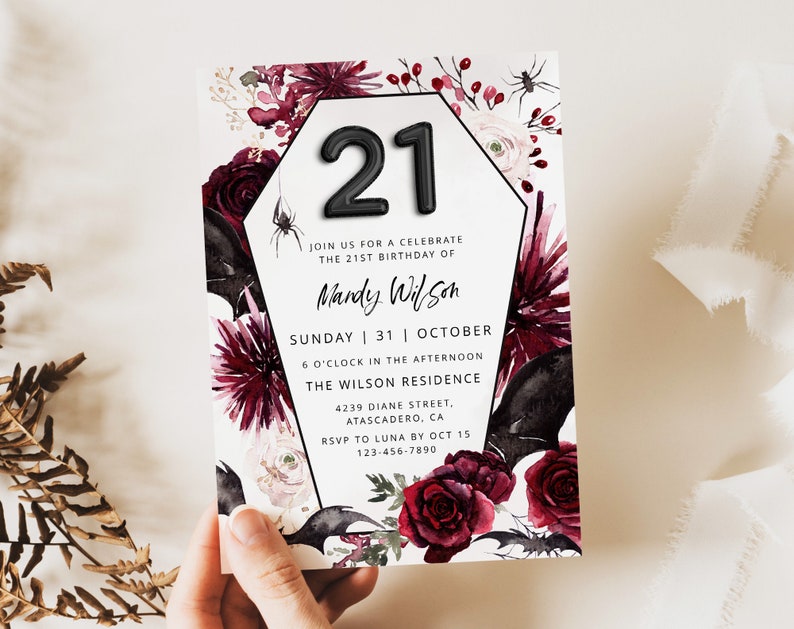 LUNA 21st Birthday Invitation Template Halloween Birthday Invite
