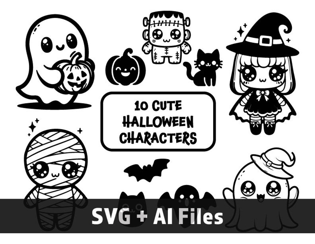 11 KAWAII Halloween Svg/vector Characters Etsy