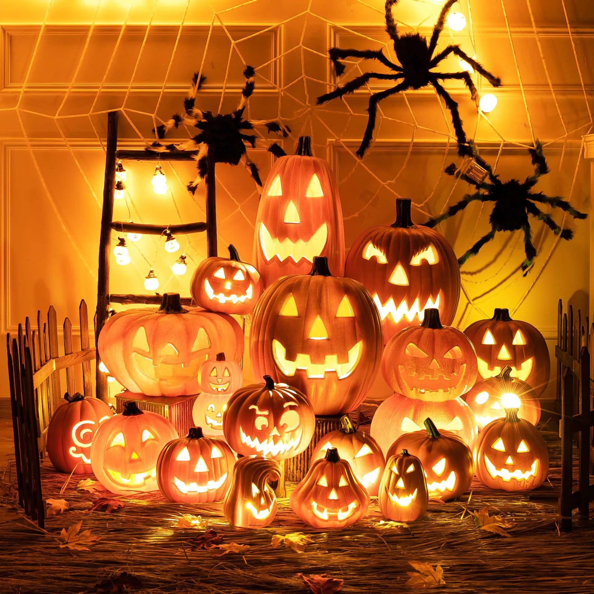 Jack o Lantern Bubble Lights Northern Lights and Trees