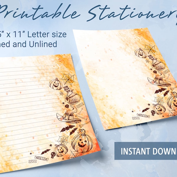 Halloween Printable Stationery Set Watercolor Halloween Lined and