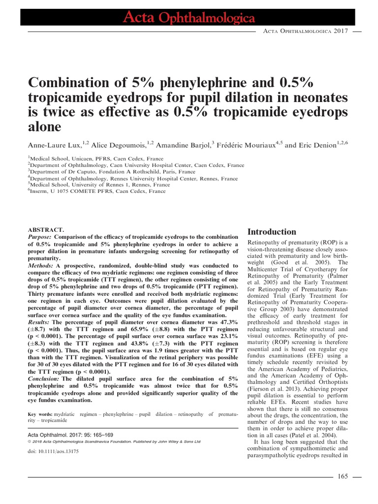 Combination of 5% Phenylephrine and 0 5% Tropicamide Eyedrops For Pupil