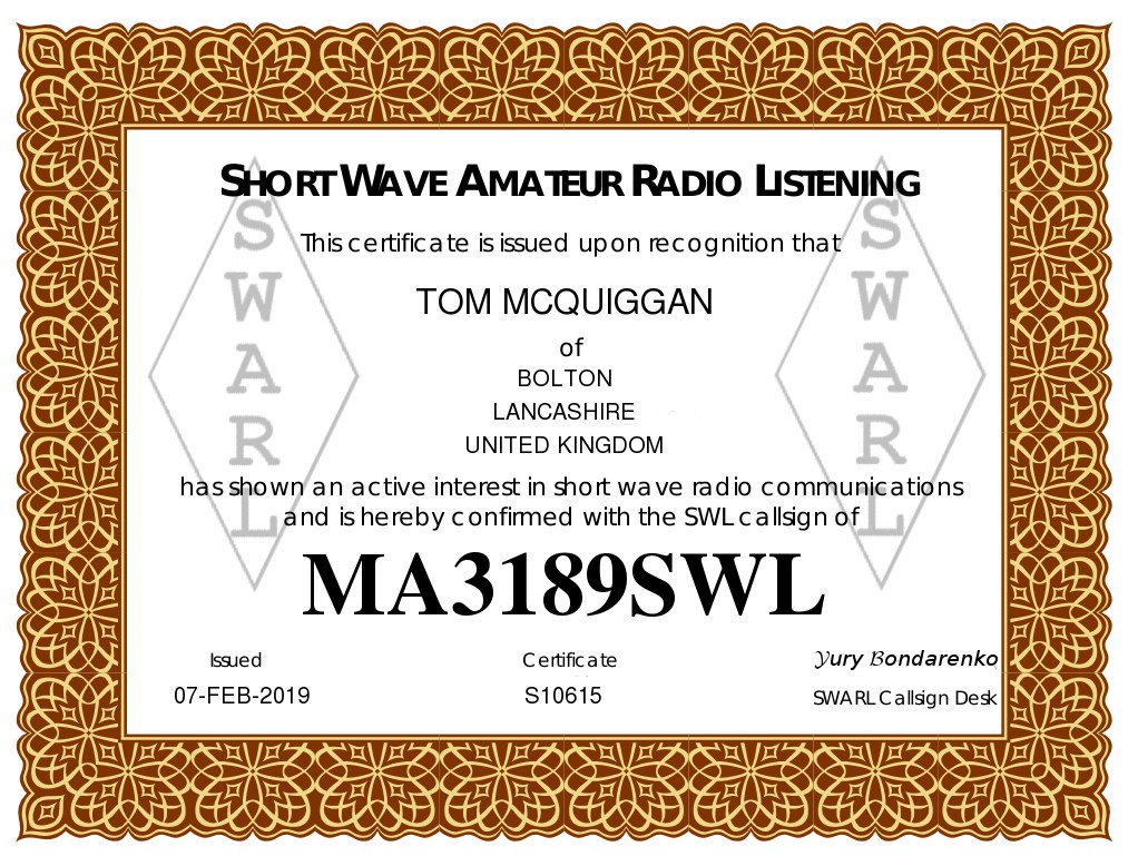 M7MCQ HAM RADIO BLOG: SWL CERTIFICATE