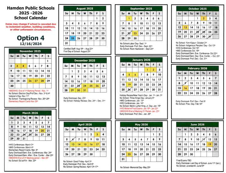 Hamden Public Schools Calendar 2025 Naomi Sanders