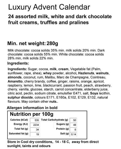 Luxury Chocolate Advent Calendar Perfect Xmas Treat Hamiltons