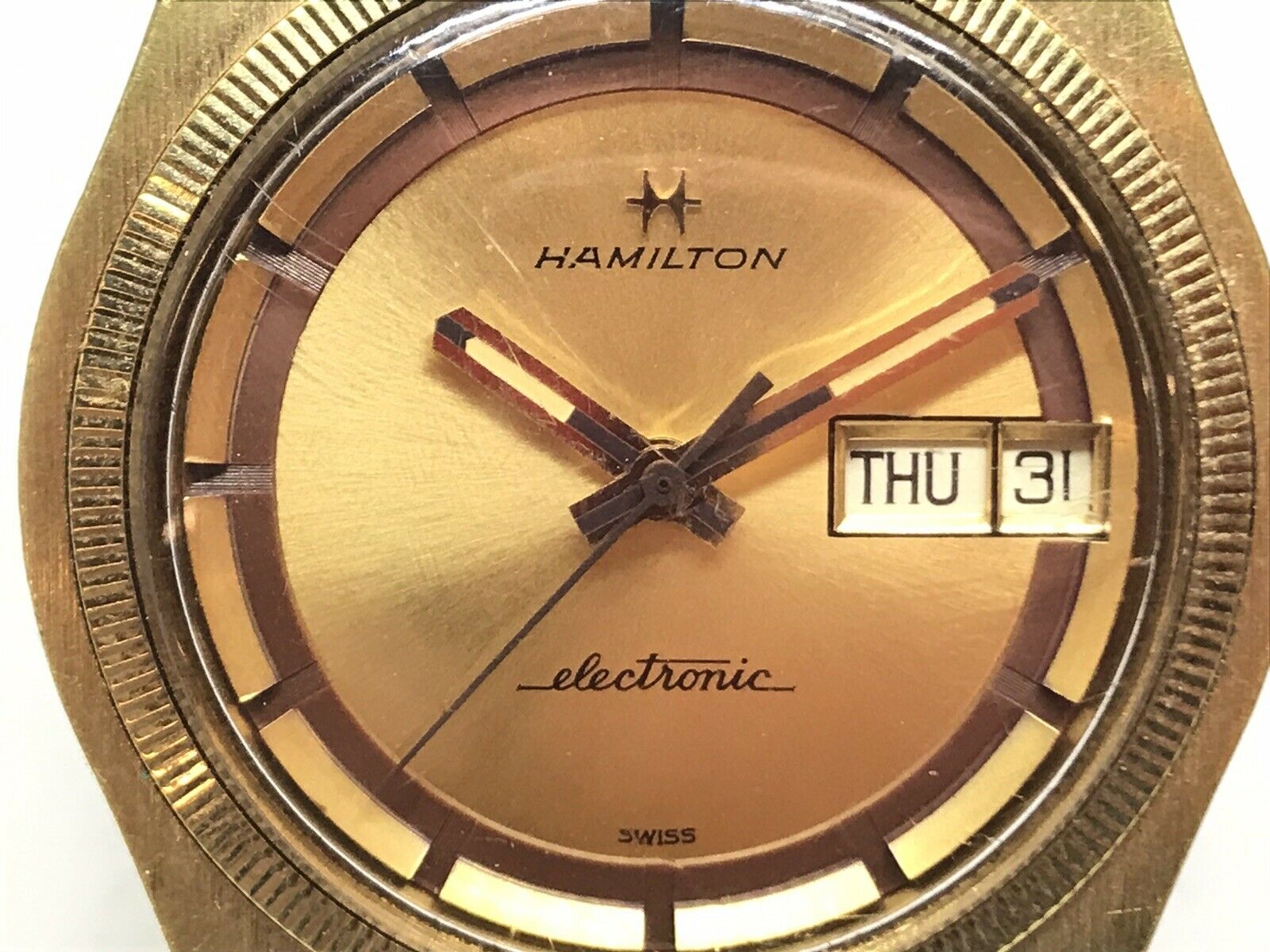 Hamilton Electronic 1970 #39 s 14K Gold Electroplate In Very Very Nice