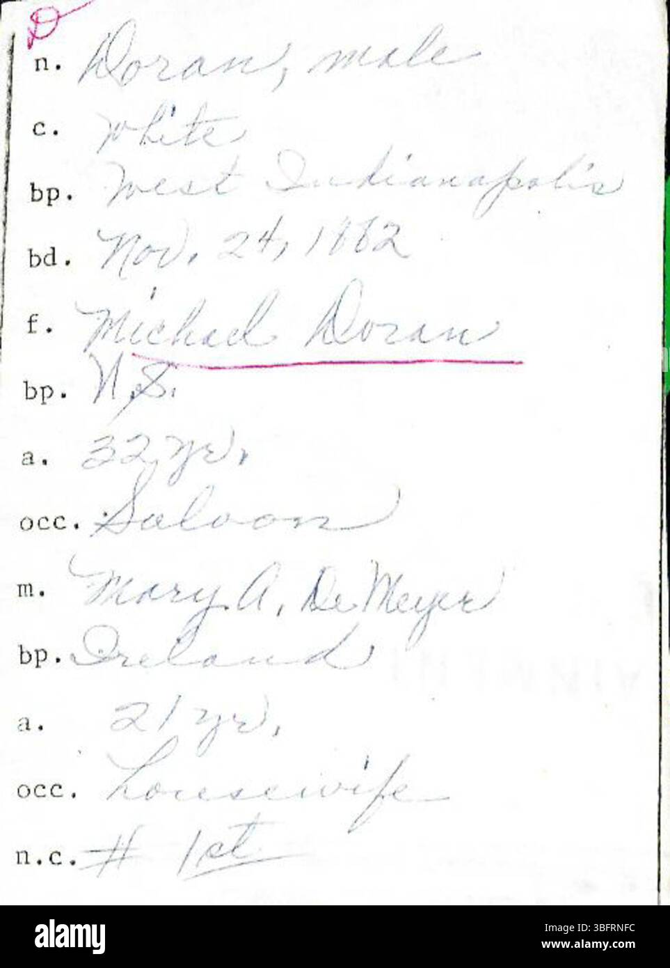 This record contains Marion County Indiana birth returns for surnames