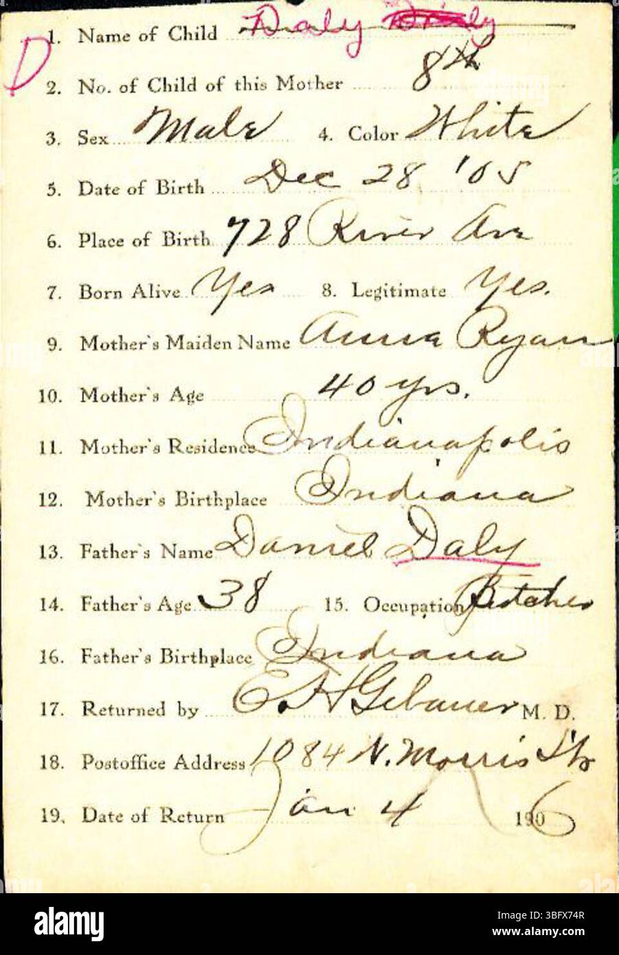 Marion County Indiana birth returns from 1882 1907 with surnames D