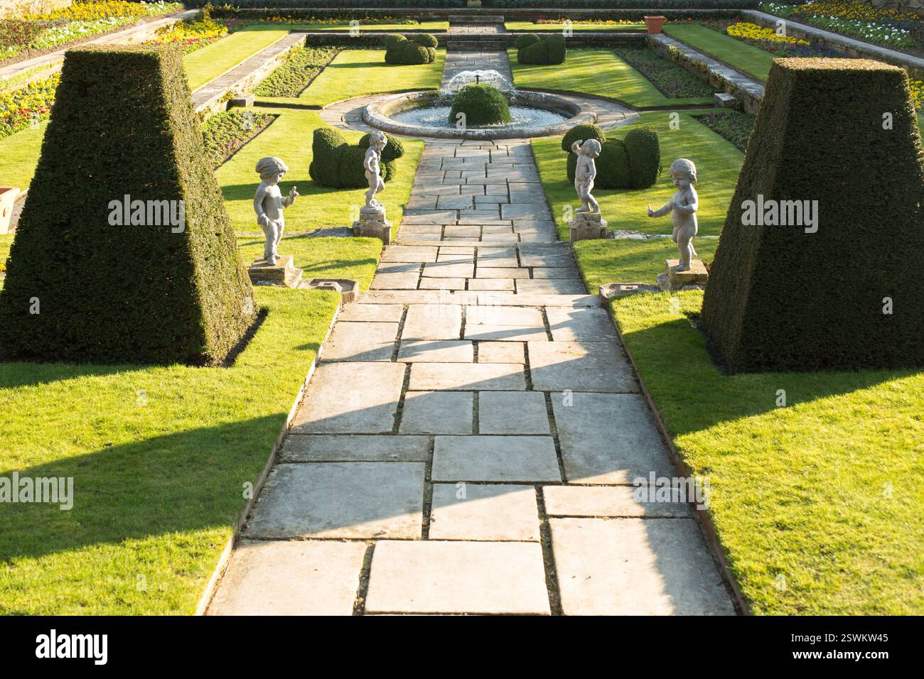 Formal gardens at Hampton Court Palace England Sculptural topiary and