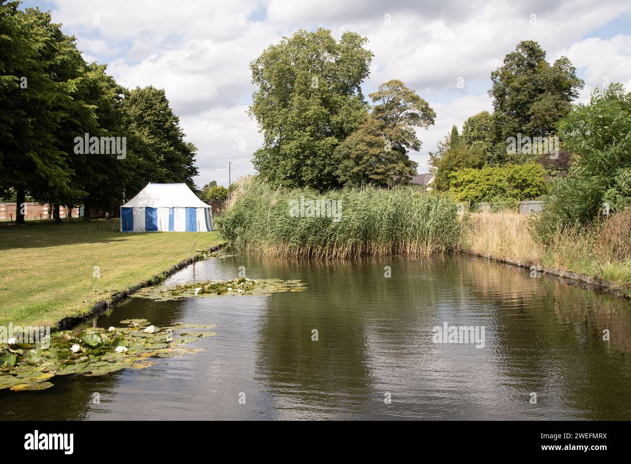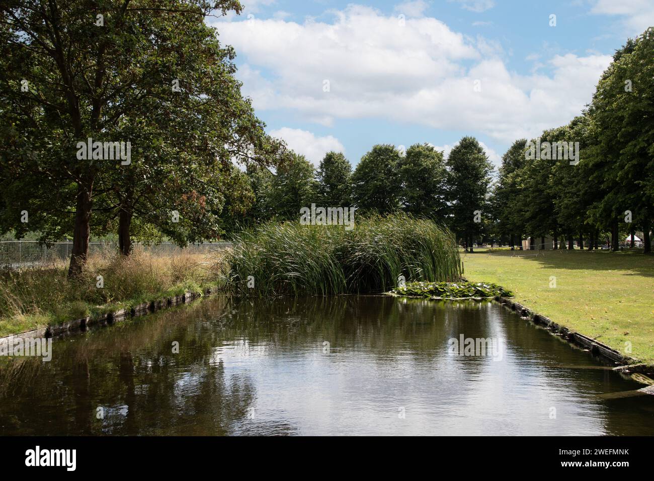 Hampton court palace England August 1st 2023 formals gardens with pond
