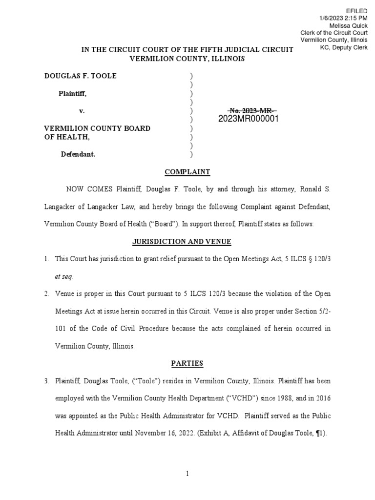 2023 01 06 Toole FM Complaint at Law PDF Virginia Circuit Court