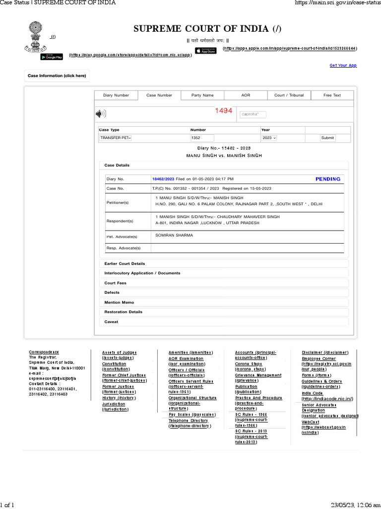Case Status Supreme Court of India PDF Supreme Court Of India