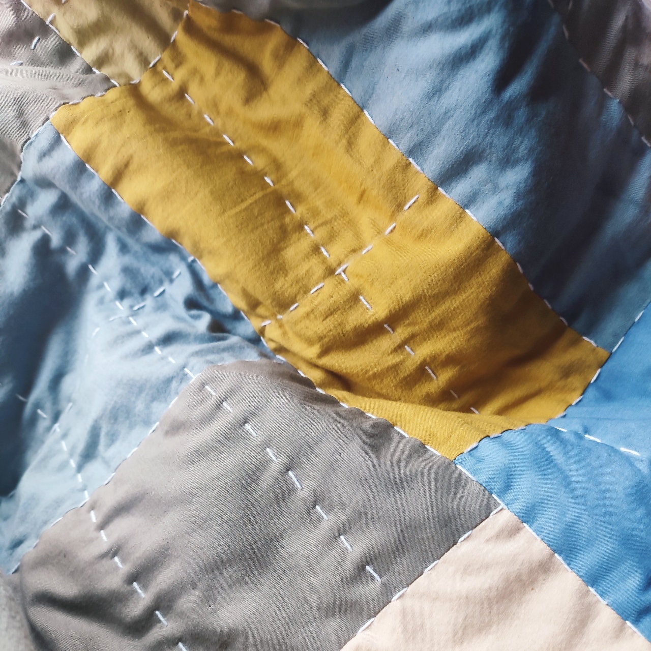 Naturally Dyed Modern Quilt Handmade Throw Quilt Upcycled Fabrics
