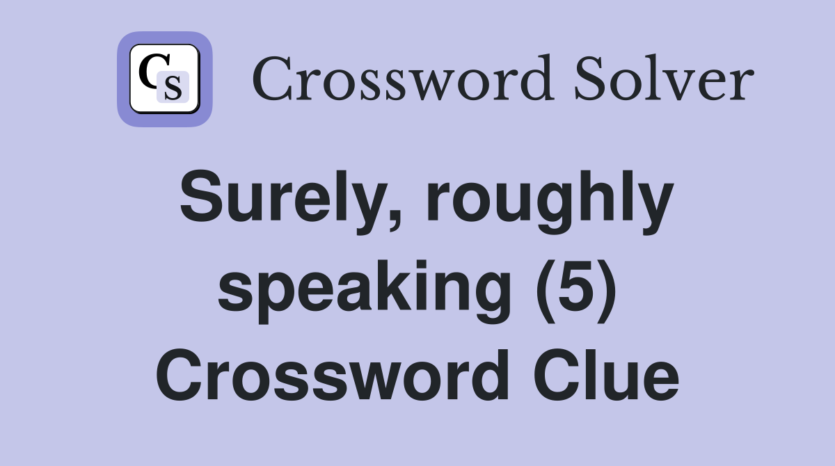 Surely roughly speaking (5) Crossword Clue Answers Crossword Solver