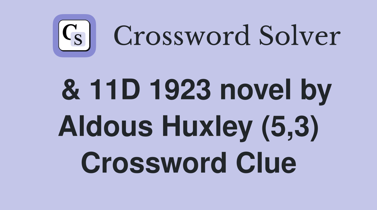 11D 1923 novel by Aldous Huxley (5 3) Crossword Clue Answers