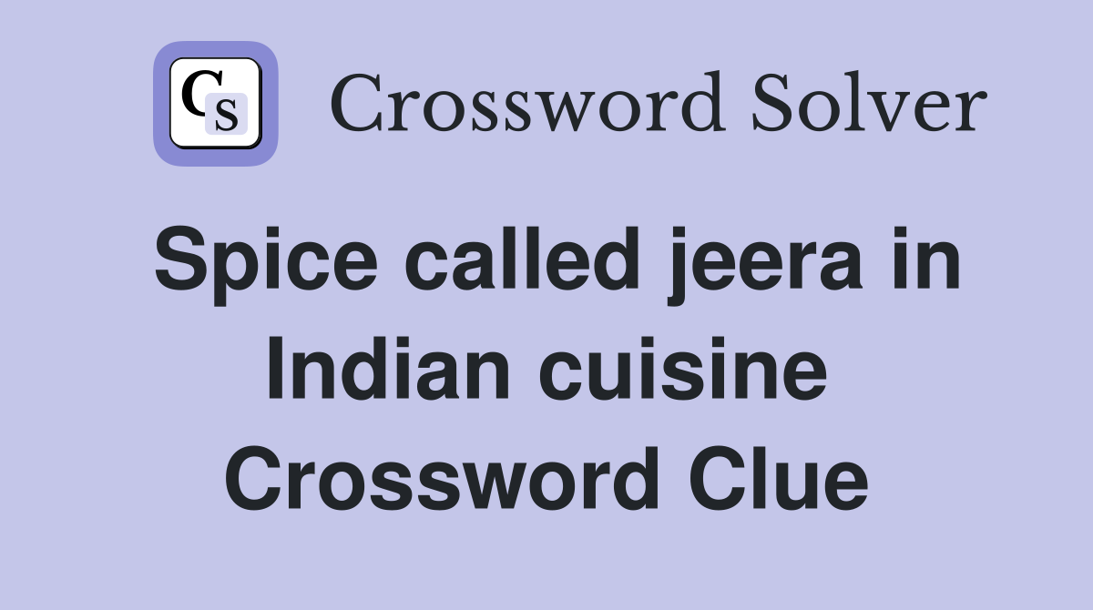 Spice called jeera in Indian cuisine Crossword Clue Answers