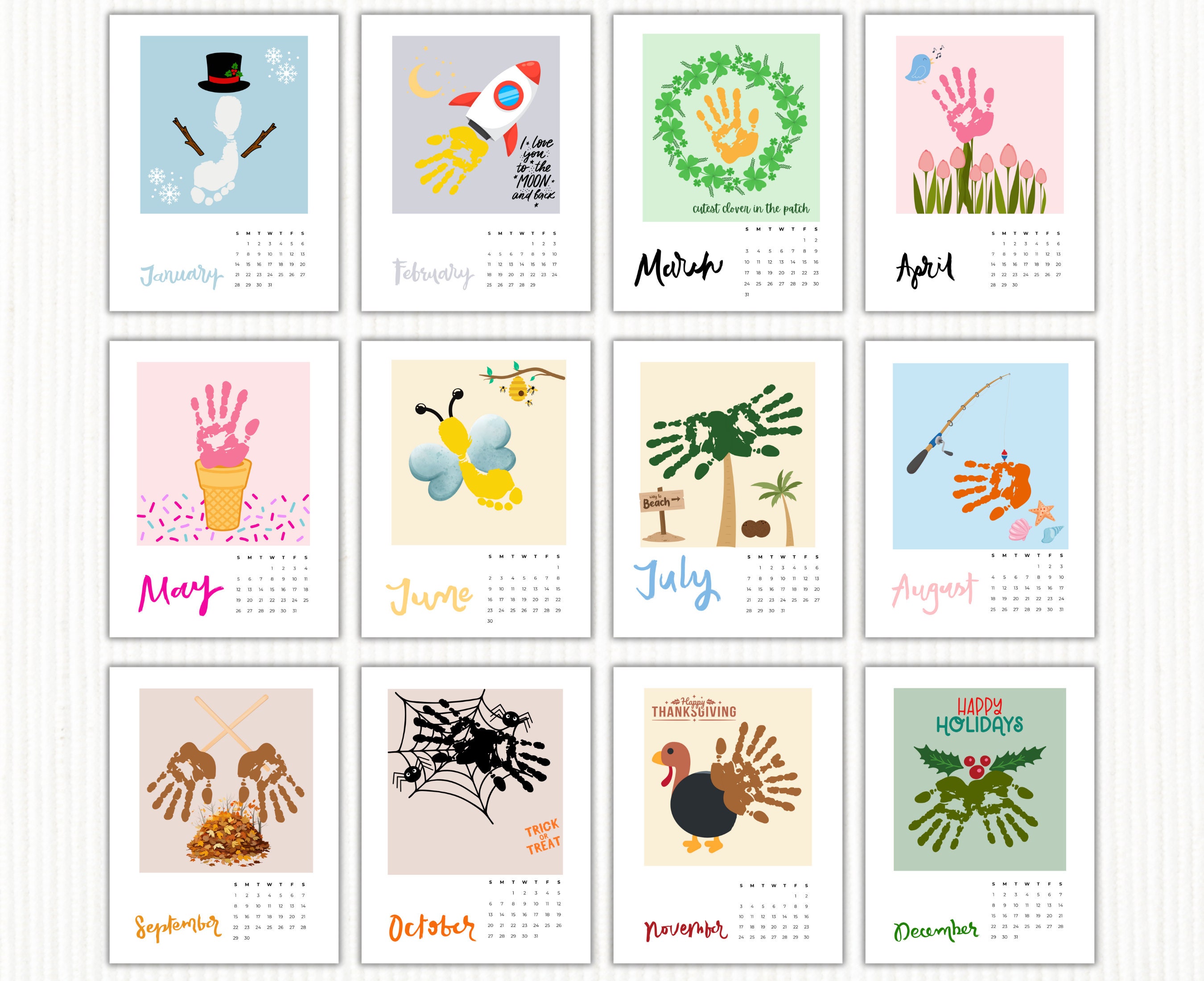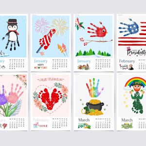 2023 handprint footprint calendar months usa art craft diy gift chil