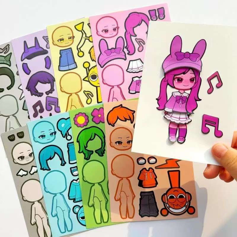 8pcs Sticker Toy Cartoon dressing stickers Handmade DIY Face Changing
