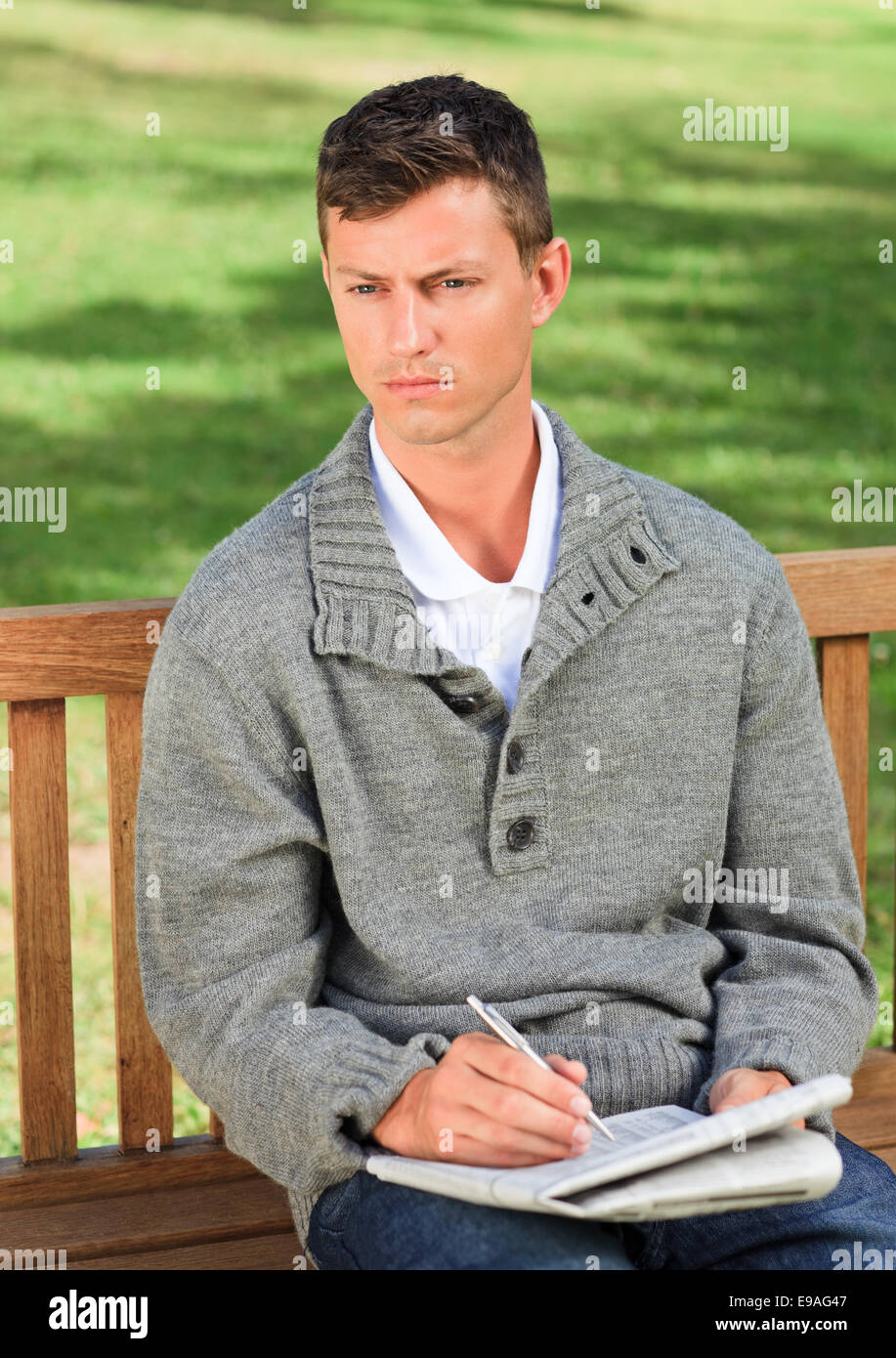 Handsome man making his crossword Stock Photo Alamy