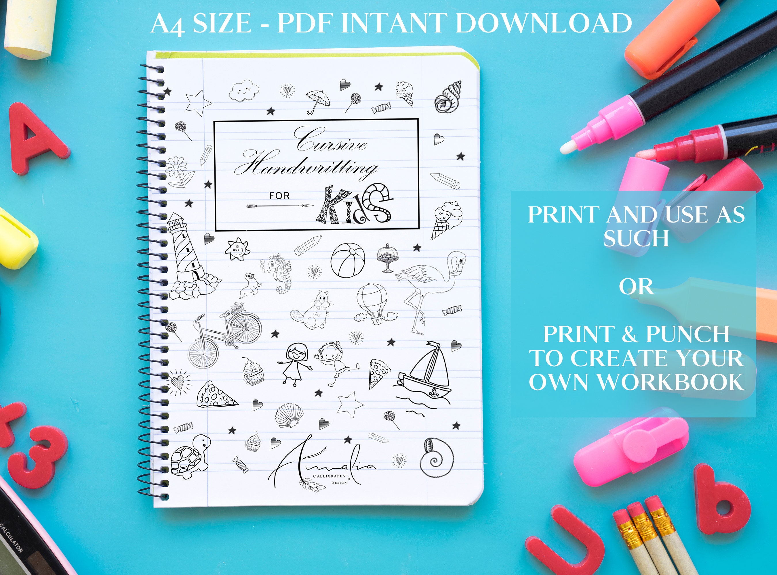 Printable Cursive Handwriting Practice Worksheets for Kids Etsy