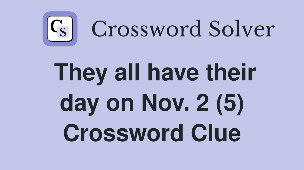 They all have their day on Nov 2 (5) Crossword Clue Answers