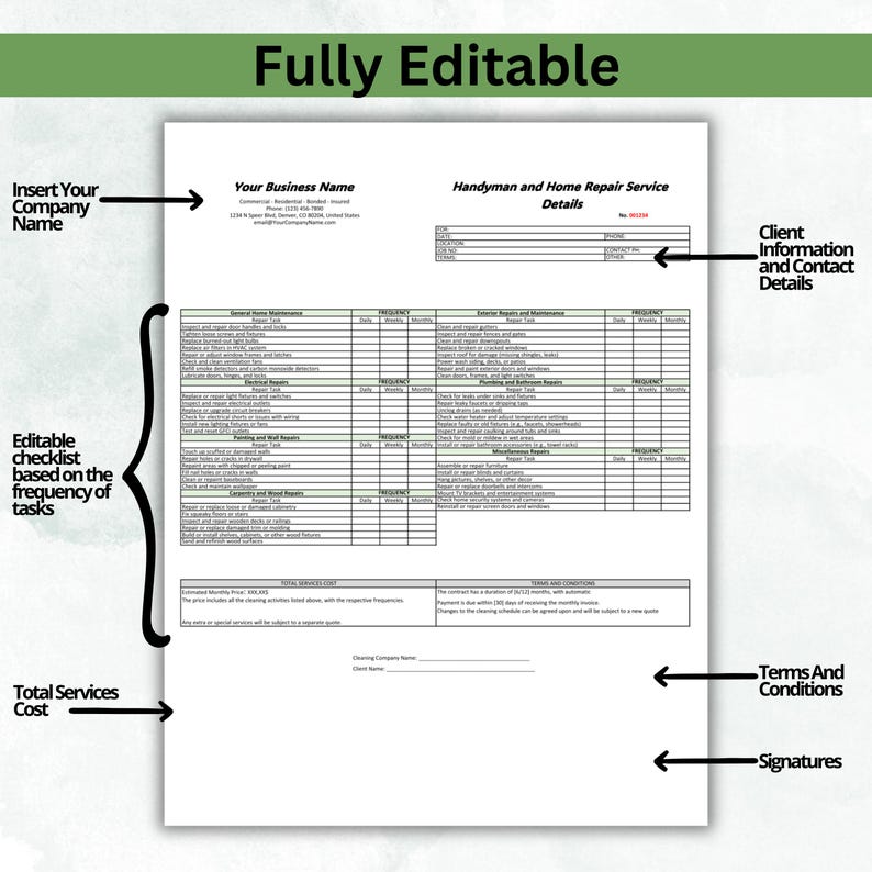 Editable Handyman and Home Repair Service Proposal Client Contract