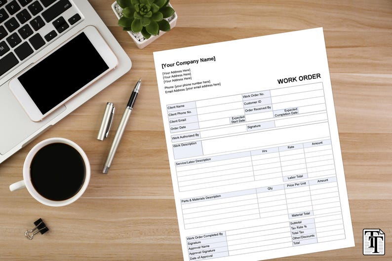Handyman Work Order Template Editable PDF Word Excel Numbers Form