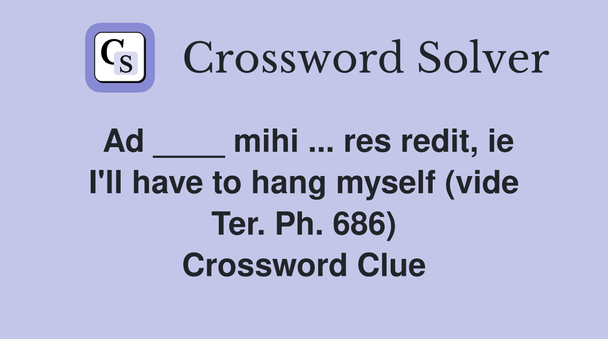 Ad mihi res redit ie I #39 ll have to hang myself (vide Ter Ph