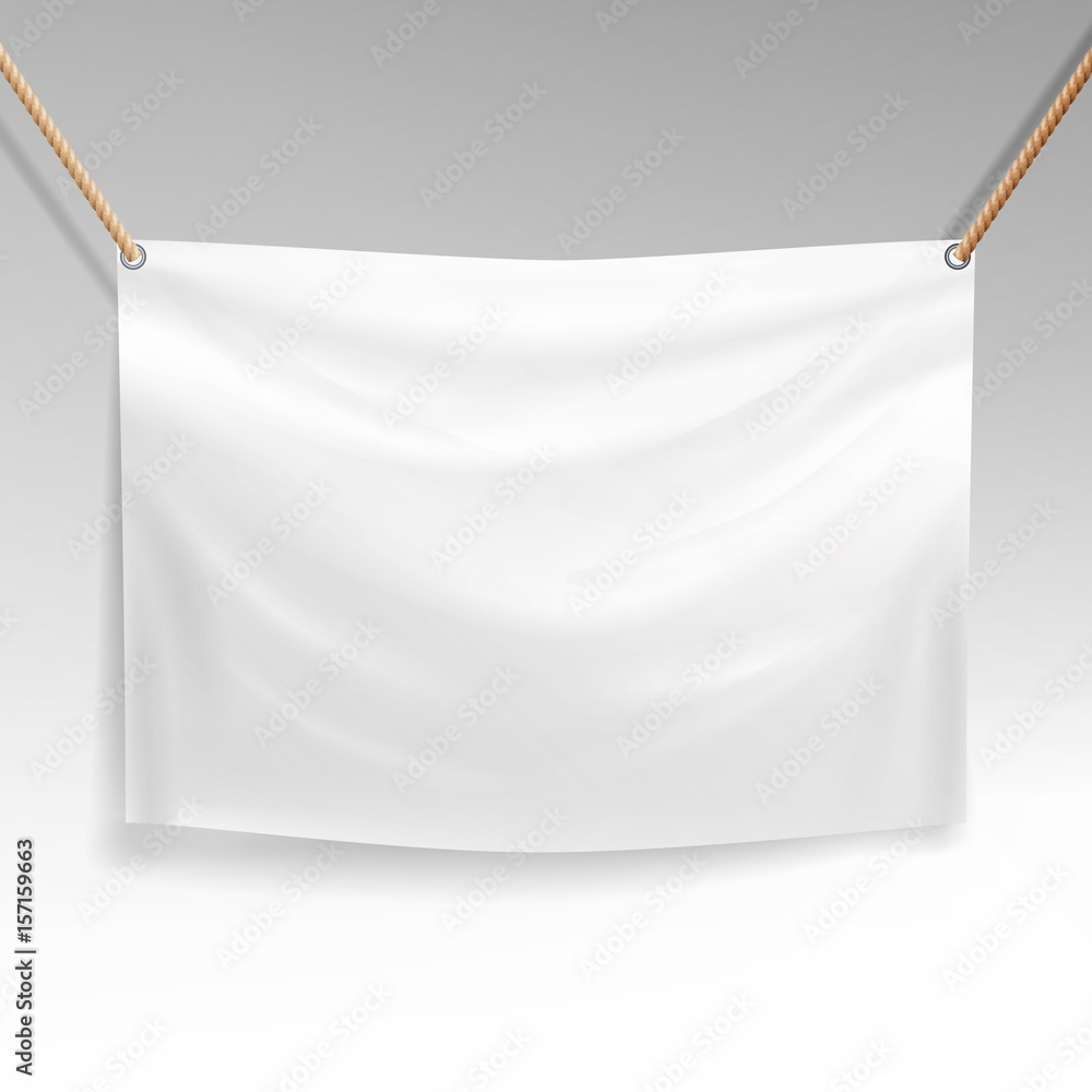 White Banner With Ropes Vector Realistic Clear Textile Hanging Banner
