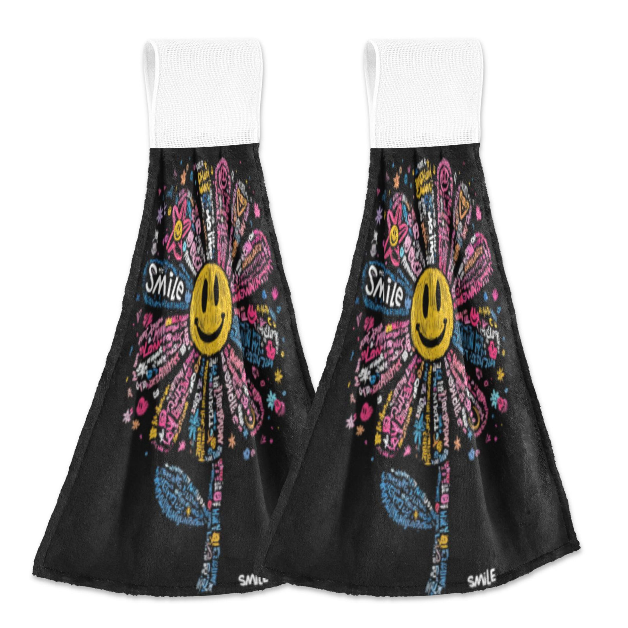 BZSMCE Hanging Hand Towels Fashion Joyful Bloom Pattern 2 Pack Velcro