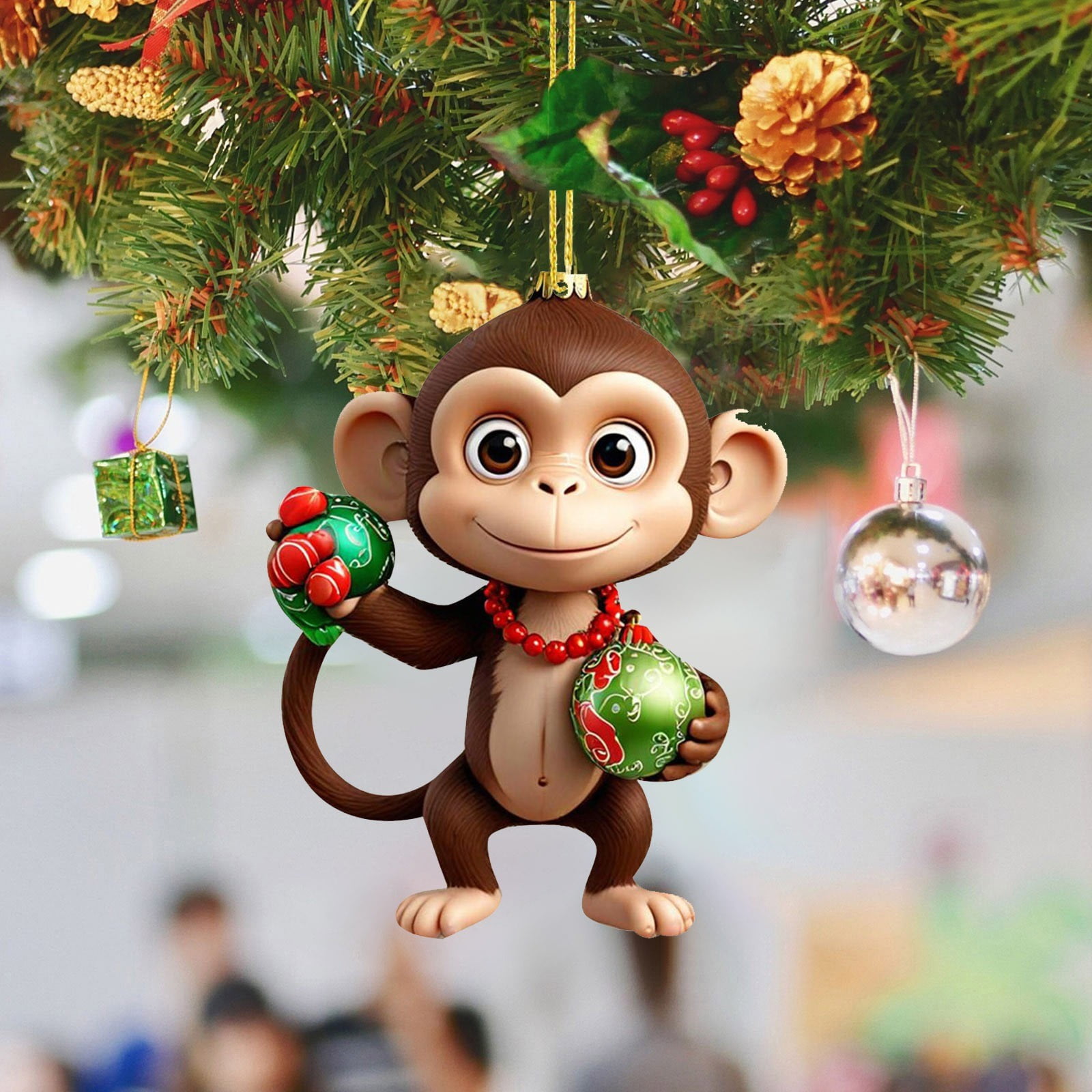 Christmas Tree Pendant Monkey Ornaments Book Stacking Holiday Acrylic